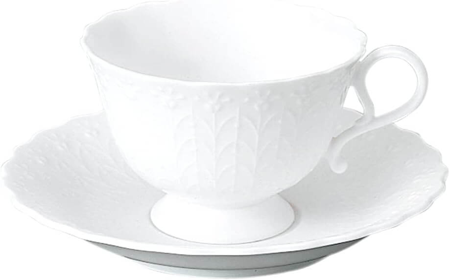 NARUMI(ナルミ) カップ ソーサー シルキーホワイト 200cc かわいい レリーフ ティーコーヒー兼用カップ&ソーサー 高台 電子レンジ温め 食洗機対応 9968-20223P