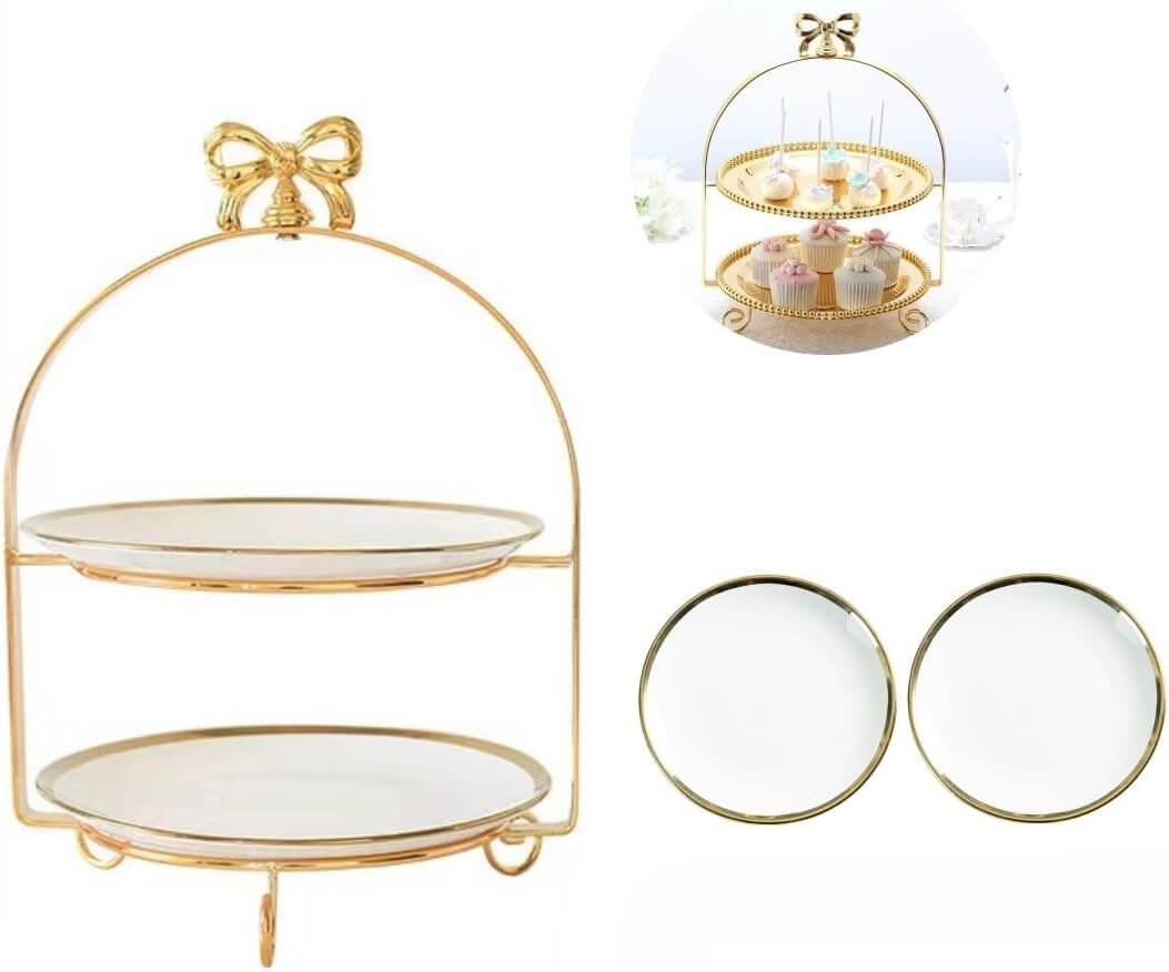 Auyyhui セラミックケーキスタンド 2 段・3 段 フルーツバスケット・デザートスタンド アーチ型カップケーキ用 アフタヌーンティースタンド ゆめかわいい・おしゃれ・北欧風 収納ホルダー パーティー・誕生日・結婚式に (2段)