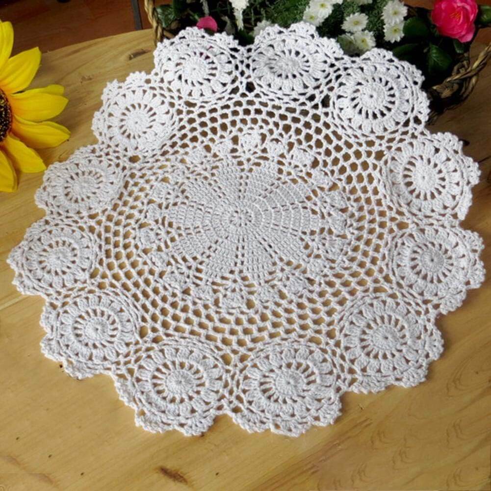 Slec tech ランチョンマット 円形 かぎ針編み プレースマット ドイリーマット ハンドメイド コットンレース 滑り止め コットンテーブルプロータスラウンド パッドテーブル 装飾用 防汚 断熱 ベージュ ホワイト35-40 cm