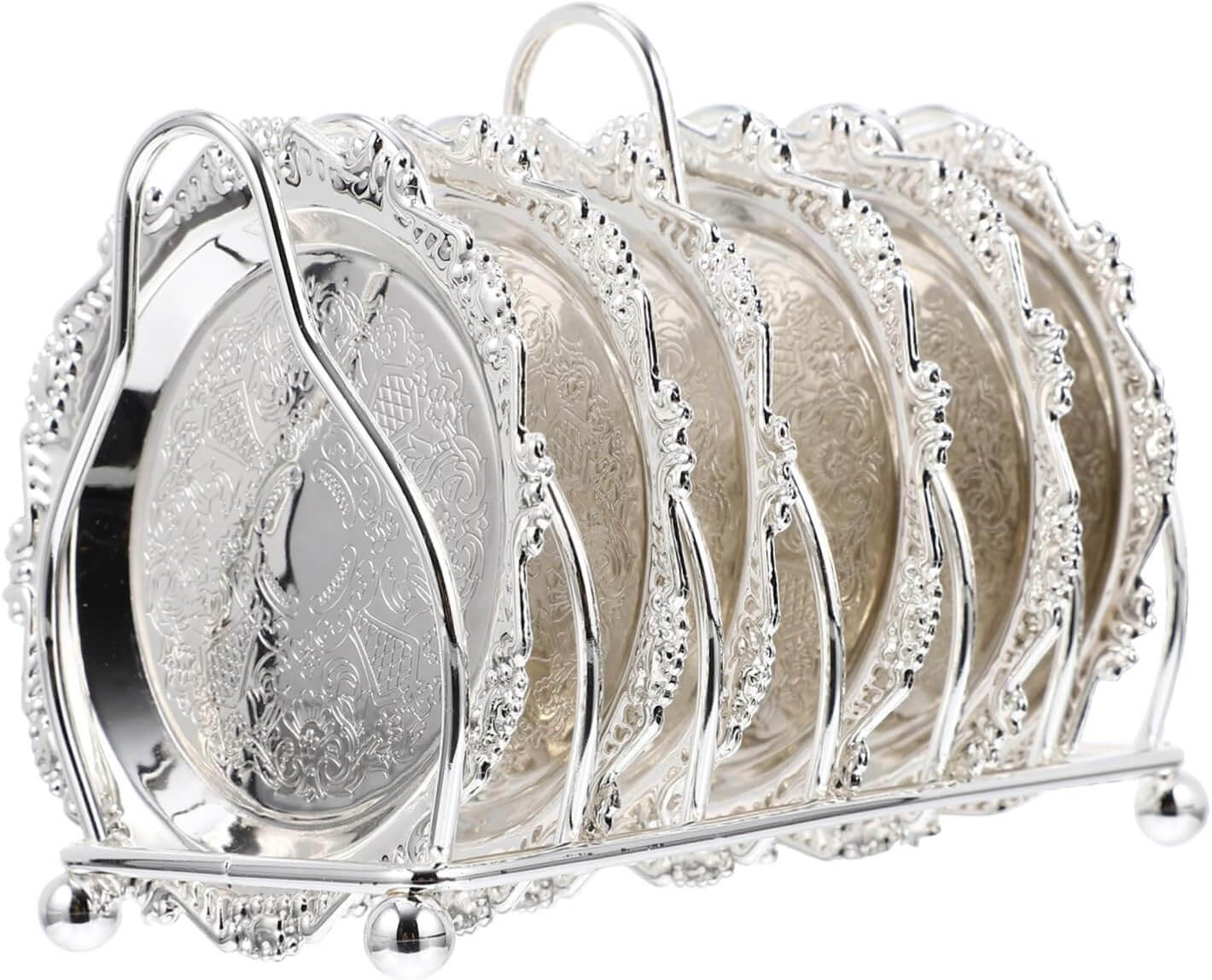 OUNONA 1 セット ミニフルーツプレートセット ボード 銀 キッチンのフルーツバスケット ラウンドサービングトレイ 食器 ゴールデン コースター ラック レストラン 皿 金属 Silver