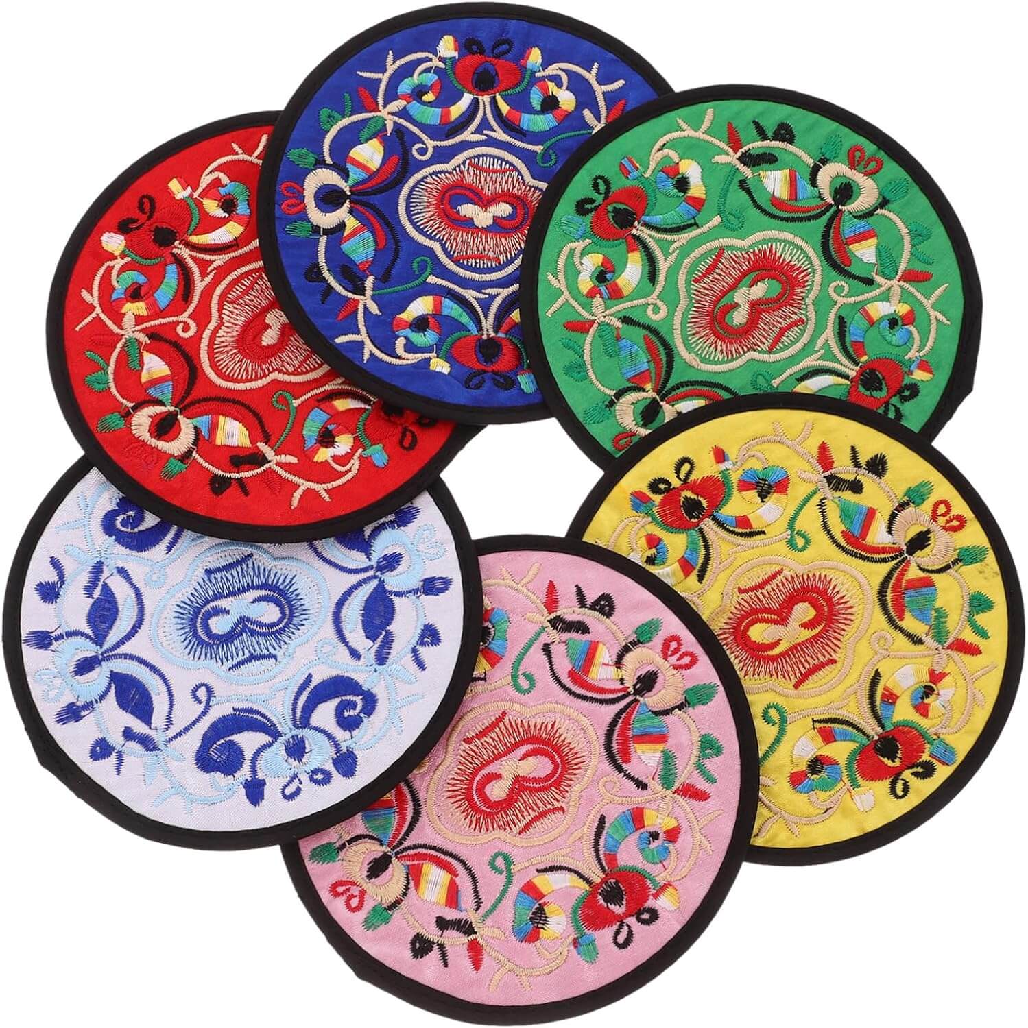 Amosfun 6個防滑カップマット 中華風刺繍 デコレーションコースター ティ