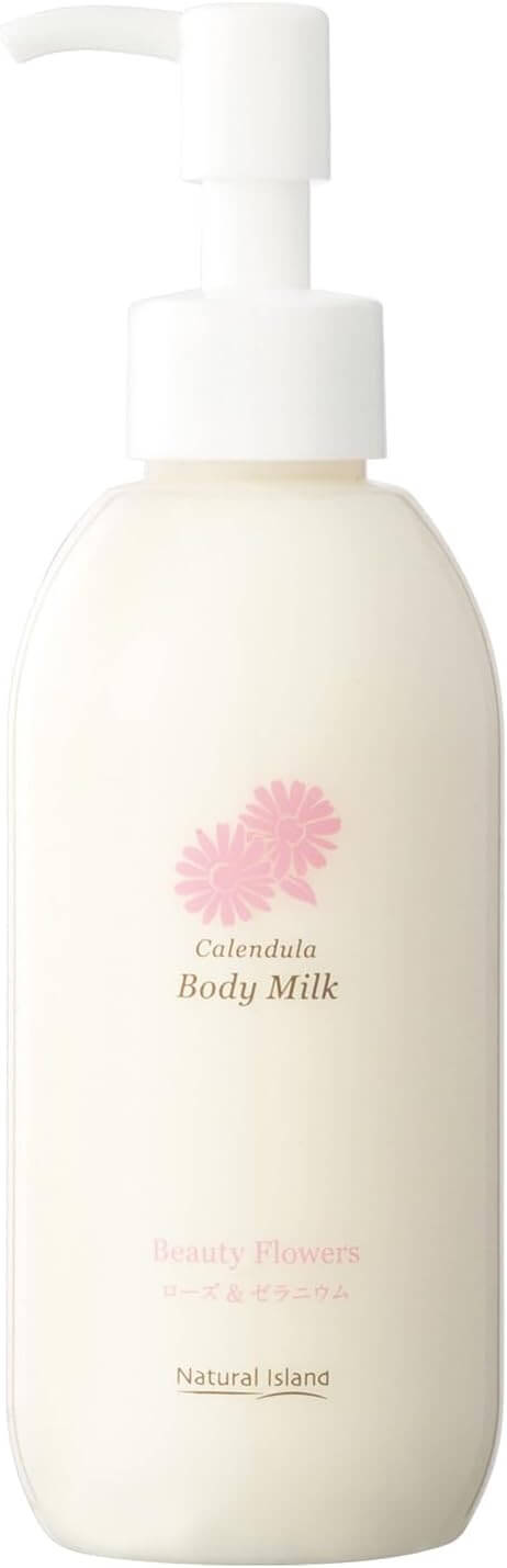 ナチュラルアイランド カレンデュラ花束ボディミルク ビューティーフラワー 200ml ボディミルク ローズとゼラニウムでみずみずしい香り 摘みたてローズの花びらのように、しなやかで美しい肌へ