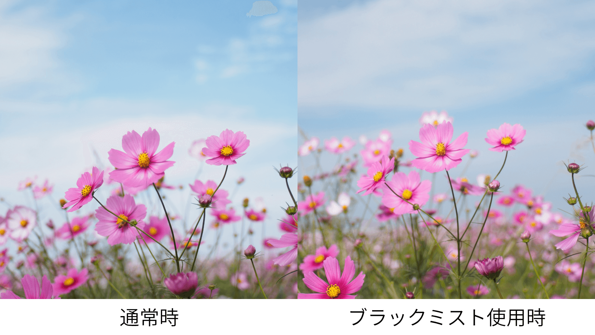 オールドレンズのようにコントラストを抑え、淡く柔らかい色調で写真を演出してくれるソフトフィルターです。ブラックミストの対となる白い拡散材を使用しており、彩度を抑えながら繊細でナチュラルな描写が可能です。高画素カメラやシャープなレンズでも、ピントの芯を残しつつほんのり柔らかい描写に仕上がります。逆光で使用すると光をやわらかく拡散し、ドラマチックな雰囲気のフレアを生み出すこともできます。フィルターを使っている感を出さず、自然にオールドレンズ風の柔らかさを写真にプラスできるのが特長です。