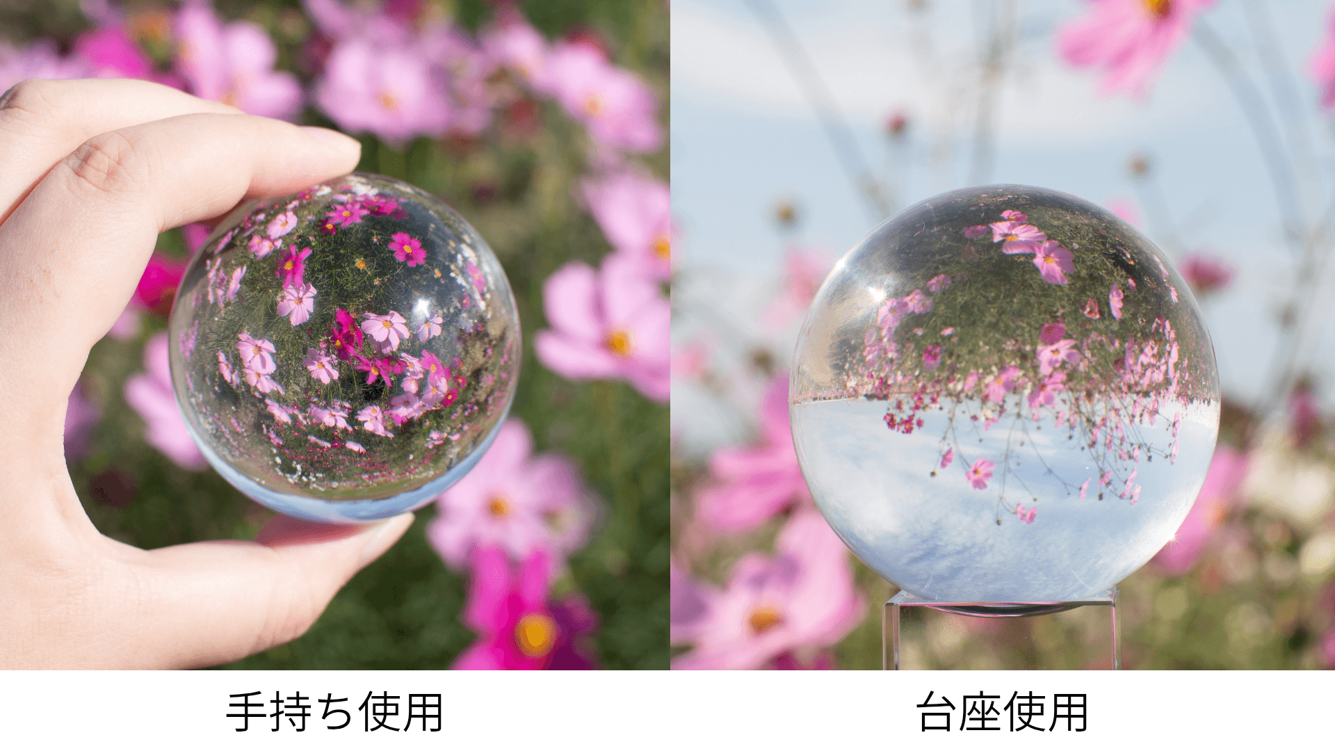 ※光が強い場所だとレンズ効果でやけどすることがあるため、手持ち撮影の際は十分にお気を付けください。また、失明の恐れがあるためクリスタルボールを通して太陽光を見ないようにしてください。
