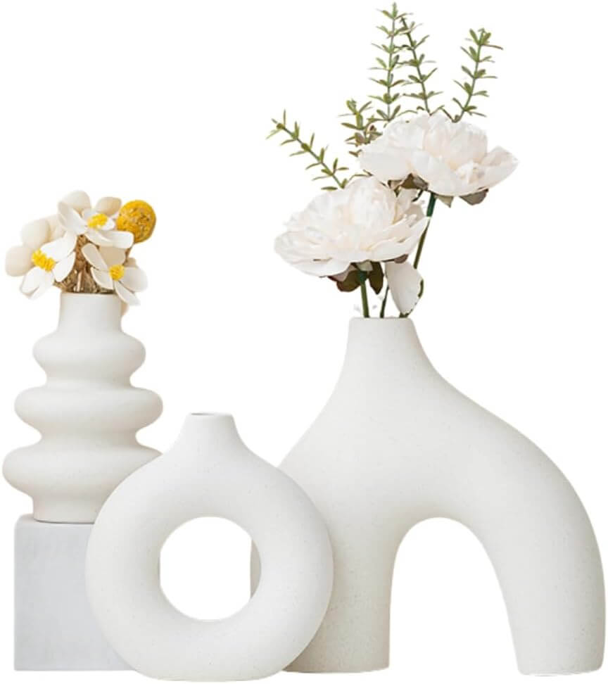 suun. 【北欧風 花瓶 3点セット】フラワーベース 陶器 モダン ホワイト おしゃれ インテリア オブジェ かわいい 一輪挿し シンプル