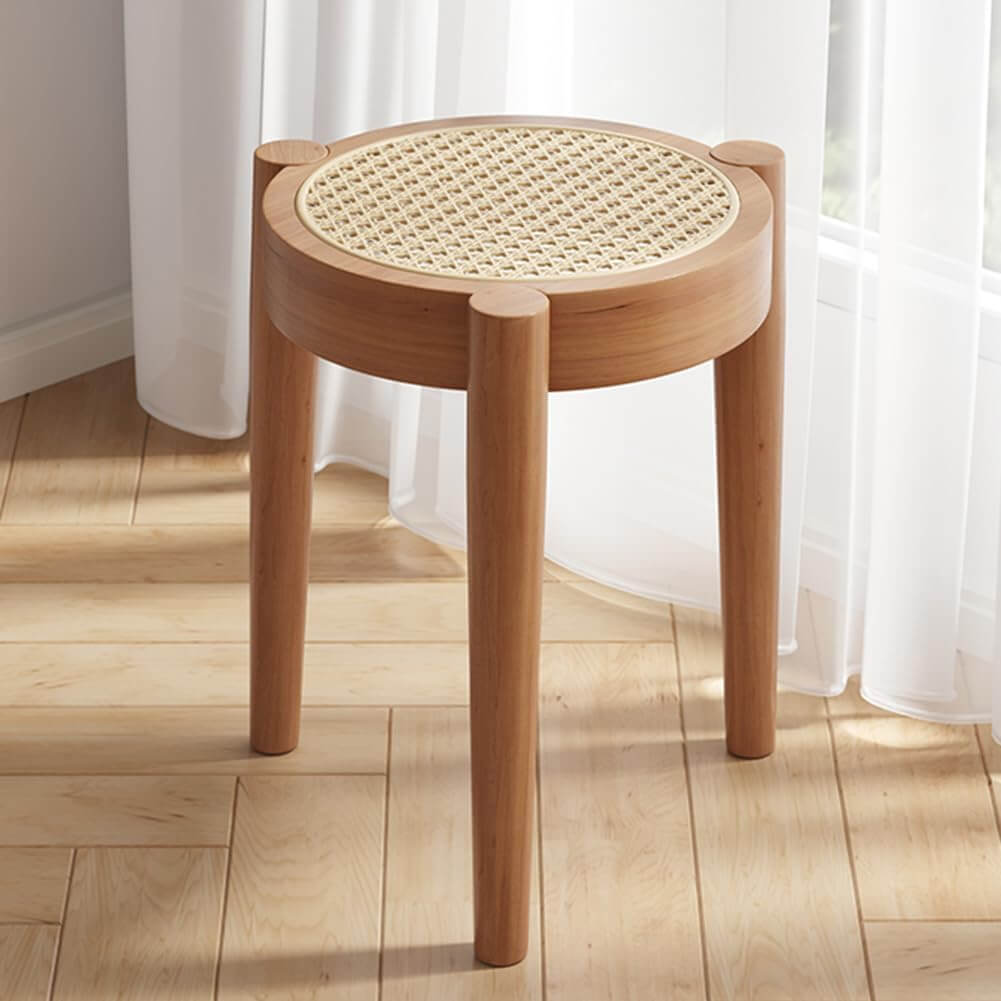 Erinotto スツール ラタン 丸 ラタンスツール 木製 北欧 スタッキング 円型 ダイニングスツール 丸い 無垢材 天然木 ナチュラル ウッド 重ねる おしゃれ スタッキングスツール 籐編み 頑丈 シンプル ダイニング リビング 玄関 来客用 コンパクト 簡単組立 (ライトブラウン)