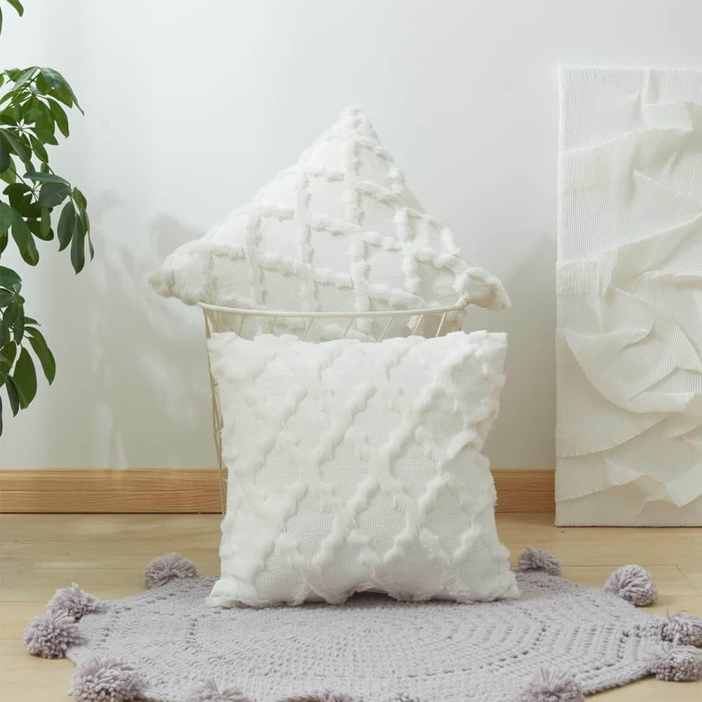 YunJeude クッションカバー 50x50cm 北欧 2枚セット フェイクファー ベルベット おしゃれ 可愛い 柔らかい 立体的 柄 幾何学模様 モダン ファスナー 家庭装飾 車 飾り インテリア