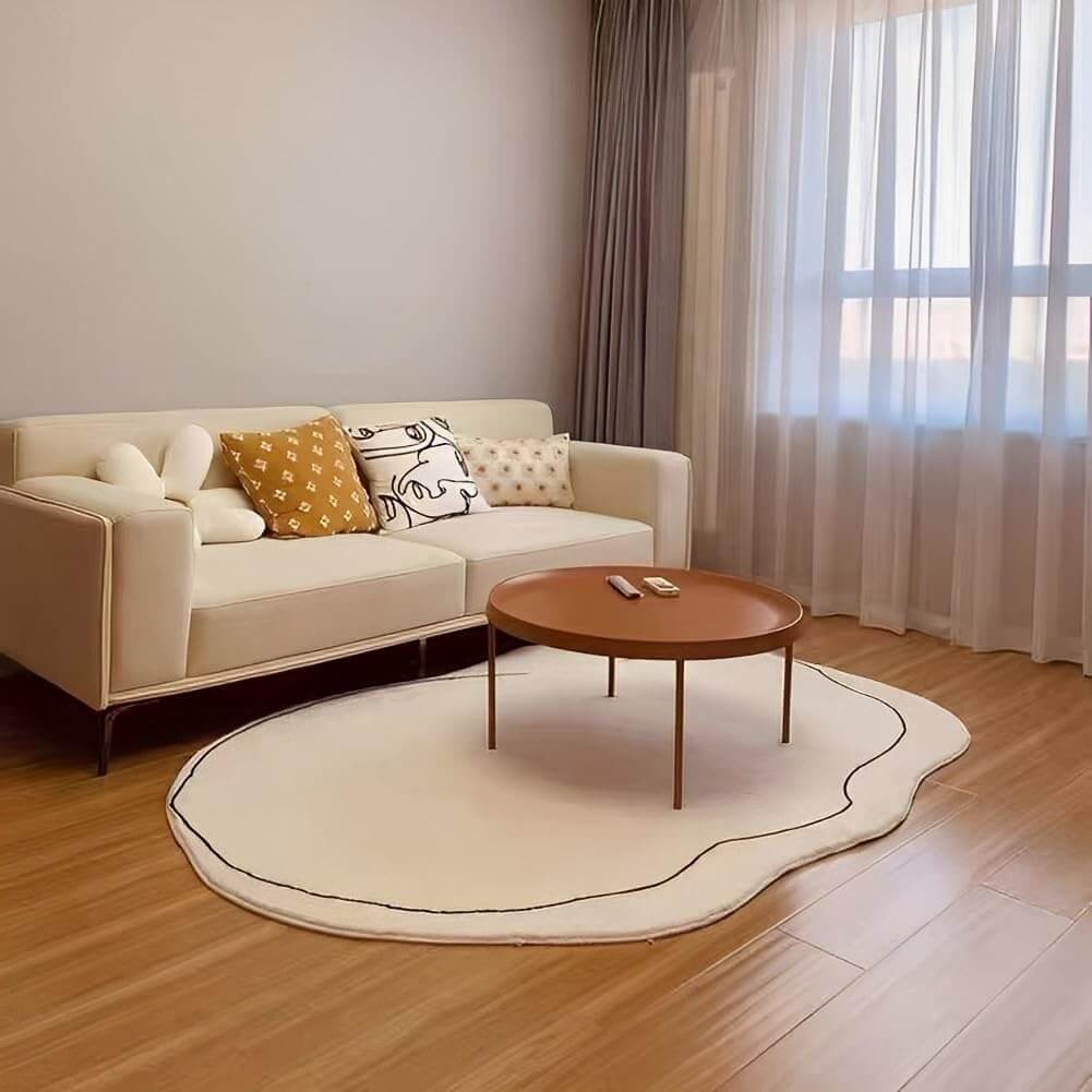 柔らかく密度のある短めの毛足で、足を乗せると優しく包み込むような肌ざわりのラグです。軽く通気性が良いので、暑い季節も快適に使用でき、床暖房対応で冬も安心。裏面は滑り止め加工付きで、お子様やペットがいるご家庭でも安全です。掃除機で簡単にお手入れでき、日常使いにも便利。ナチュラルなホワイトカラーと曲線的なデザイン、細いラインのアクセントが、韓国風インテリアに自然に溶け込みます。