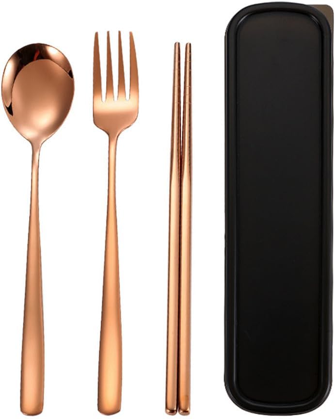 DOMATUS 箸 スプーン フォーク 3点セット カトラリーセット ステンレス鋼 北欧風 携帯便利 弁当用食器セット 収納ケース付 コンビセット 通勤通学 学生 大人用多色選択可 遠足 ピクニック 旅行用 (ローズゴールド)