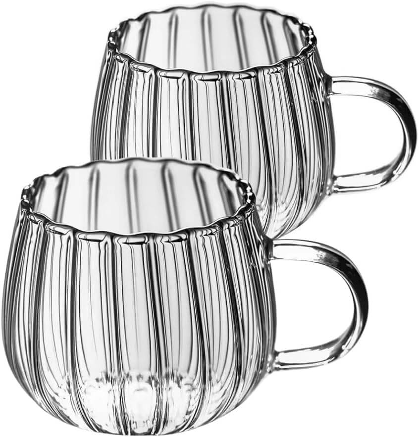 Zehaiwl 耐熱ガラス マグカップ 耐熱マグカップ コーヒーカップ ティーカップ ガラスカップ グラス 食洗機対応 (ライン,ペアセット)