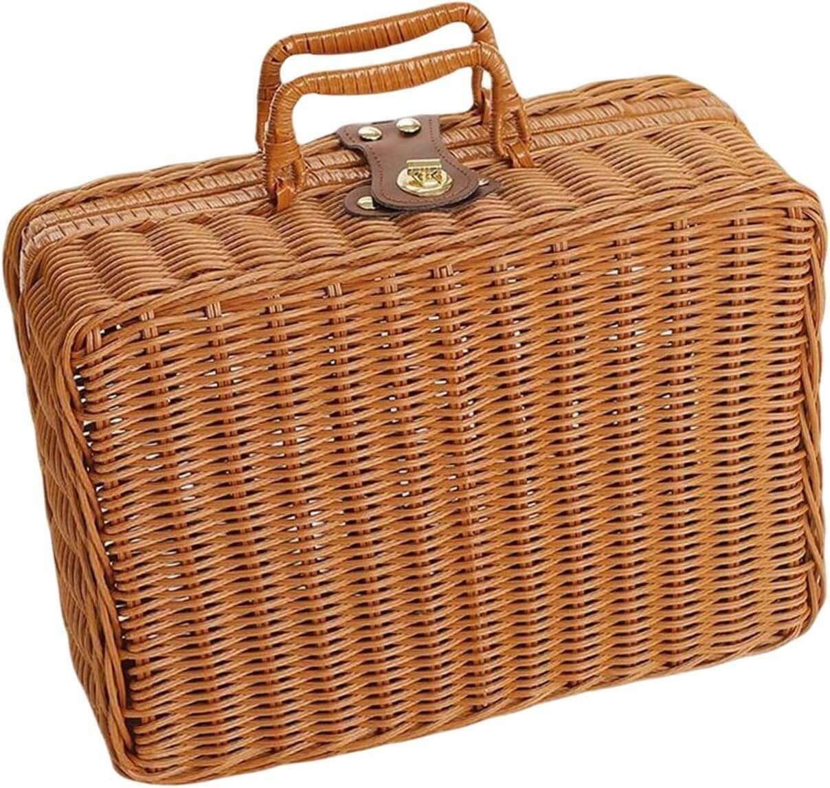 Generic 素朴なフェイクラタン ピクニック バスケット ハンドル付き 枝編み細工品バスケット ストレージ ボックス ヴィンテージ ビーチ アウトドア 野菜 サンドイッチ チップ