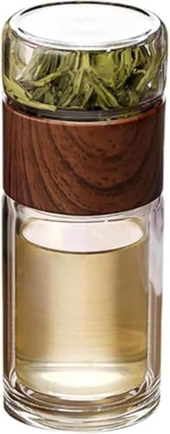 Girlmarry 超軽量二重ガラス 分離式水筒 茶こし付き おしゃれ耐熱耐冷 自宅用 勤務先 旅行スポーツ アウトドアガラスコップ 携帯便利急須 ティーポット ちゃこし付きタンブラー (420ML,A)