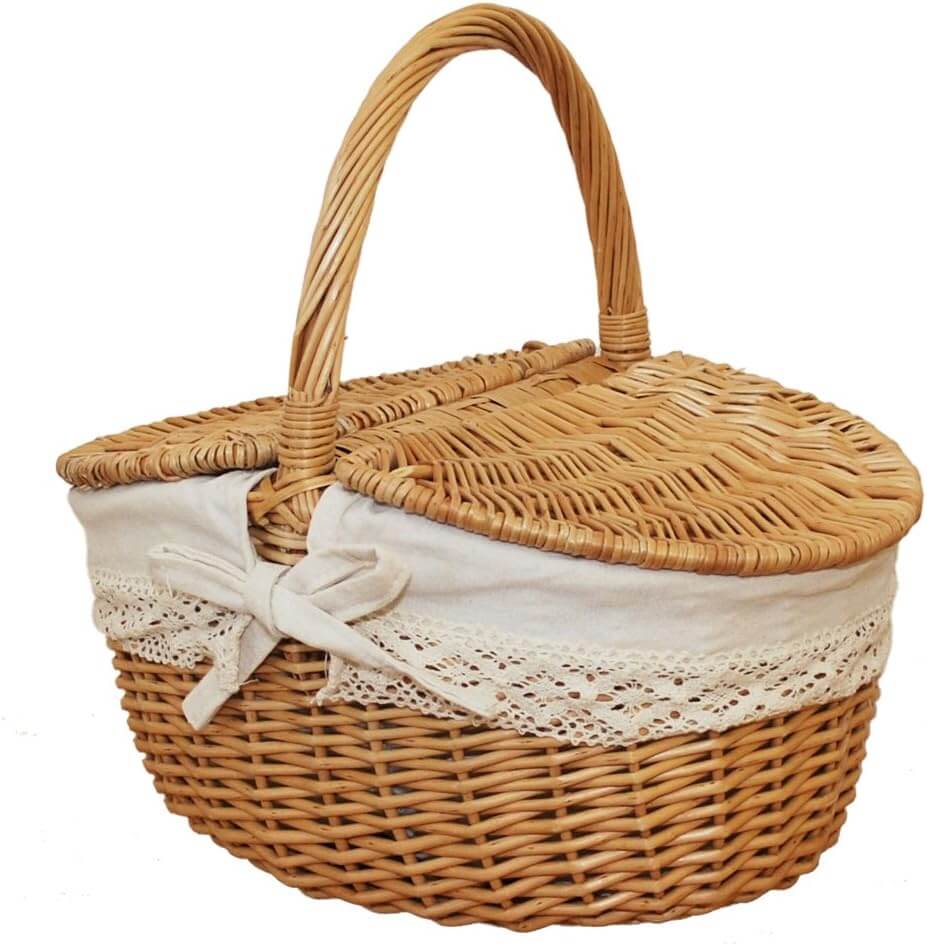 メルカド かご収納雑貨の店 フタ付き ウィッカー ピクニック バスケット (レース)