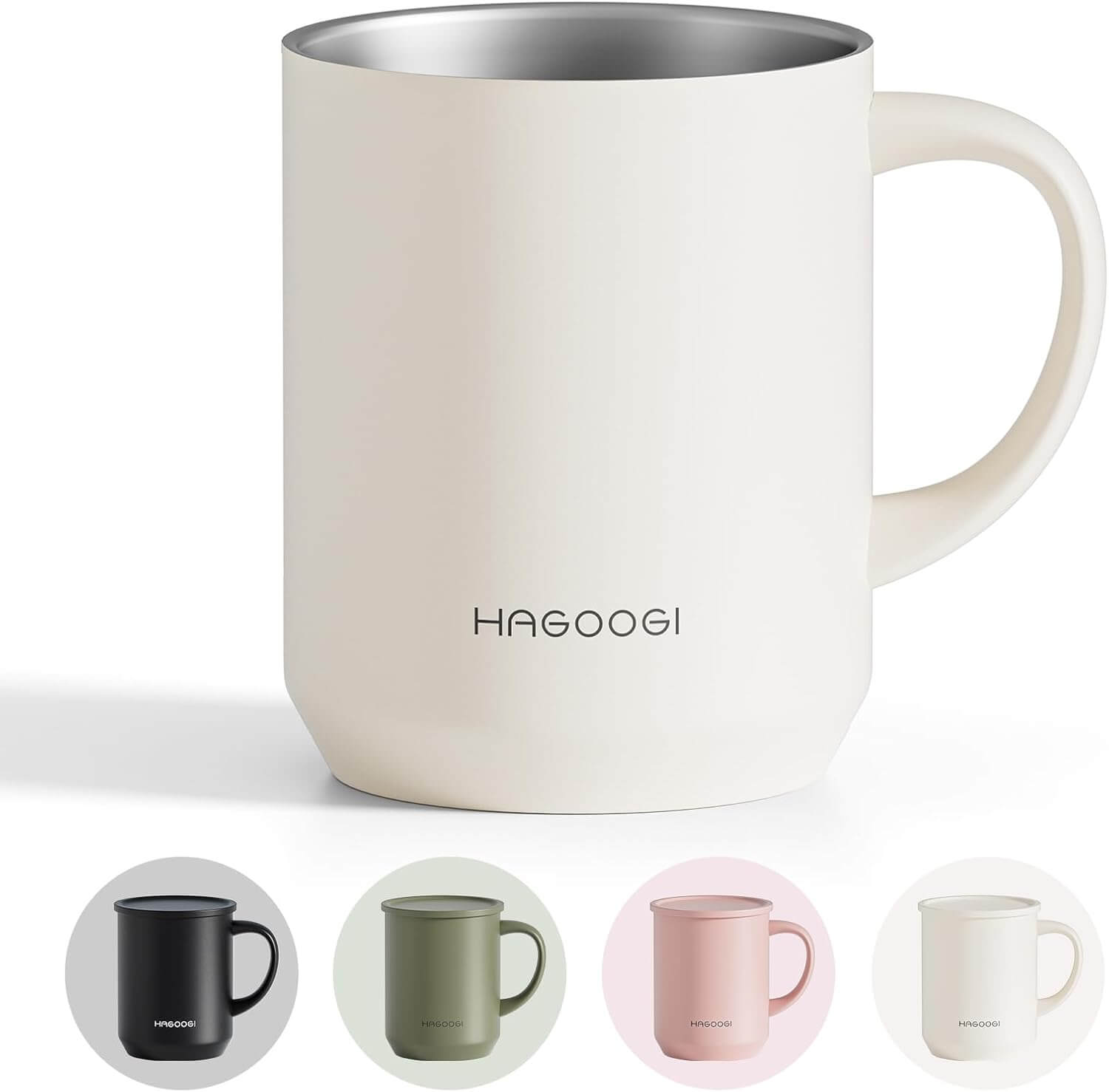 HAGOOGI マグカップ 蓋付き 保温 保冷 360ml 真空断熱 セラミックコーティング 二重構造 シンプル おしゃれ 家庭やオフィスに最適 ステンレスマグカップ コーヒーカップ 敬老の日 プレゼント ホワイト