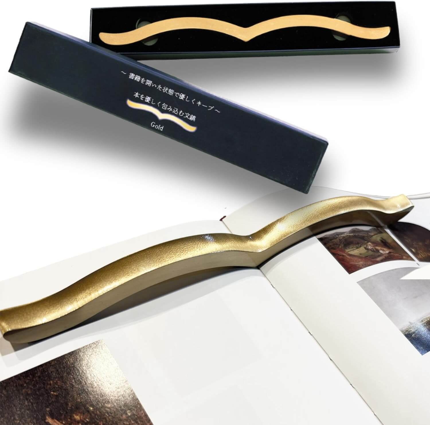 INOBRILLIANT 文鎮 「本を包み込む文鎮」 【インテリアコーディネーター監修】 プレゼント 質量約250g おしゃれデザイン 文鎮 ブックホルダー 高級ギフトボックス付 重り (金色(Gold))