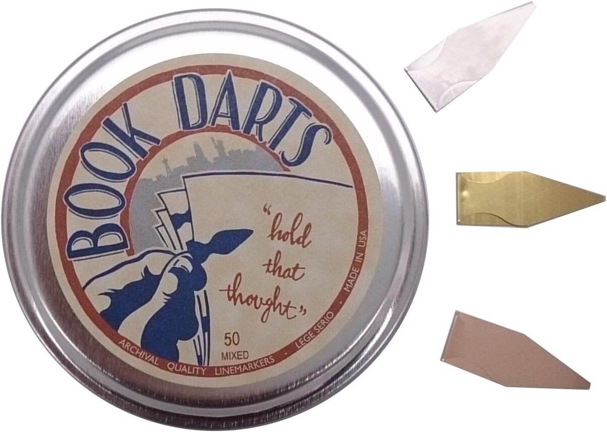 ダーツの矢先の形をした金属製のしおりで、ページの端に挟むだけでなく、そのページの何行目まで読んだかを正確に指し示すことができます。薄さ約0.1mmで、本にたくさん挟んでもかさばらず、何度でも繰り返し使用可能。長編小説やシリーズ本など、大きな本でも細かく読み進めた位置を記録でき、読書体験をより快適にサポートします。アメリカで1992年に生まれ、今も小さな工場で丁寧に製造されており、クラシックな見た目で贈り物にもおすすめです。
