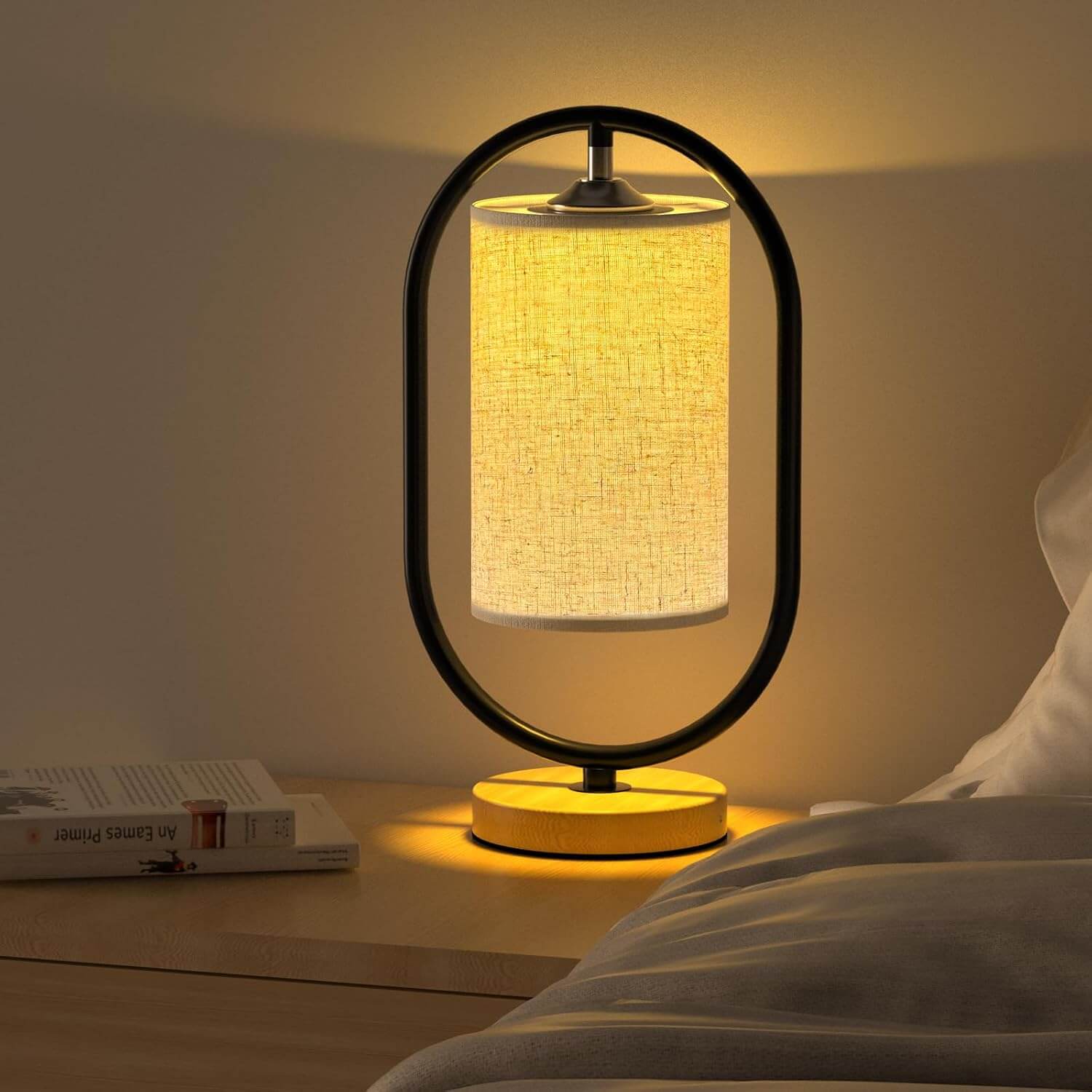 ラブホーム美家 【3色ランプ&無段階調光】木製 テーブルランプ コードレス 間接照明 おしゃれ 和風 スタンドライト ベッドサイドランプ タッチ制御ケーブル メモリ機能 目に優しい 授乳ライト ナイトライト かんせつ照明 おしゃれ (ブラック)