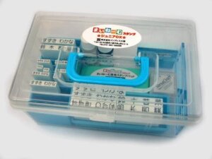 自分でひらがなや数字などのゴムシートをセットして使用するお名前スタンプです。油性のインキで落ちにくく、様々な素材に使用できます。