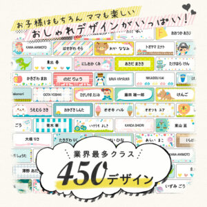 なんと450もの種類のデザインから選べるお名前シールです。これだけの種類があると、お友達とシールが被る心配もありません。また、最大で681枚も入っているのも嬉しいポイント。デザインが1つに絞れない場合はミックスタイプも選べます。