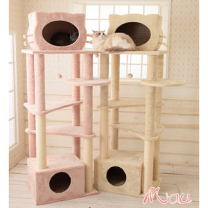 猫専用のお家やベッドがついており、遊びに疲れた猫ちゃんがゆっくりできるスペースもあります。全体的に爪とぎポールが多く設置されているので、よく爪を研ぐネコちゃんは喜ぶこと間違いなしです。